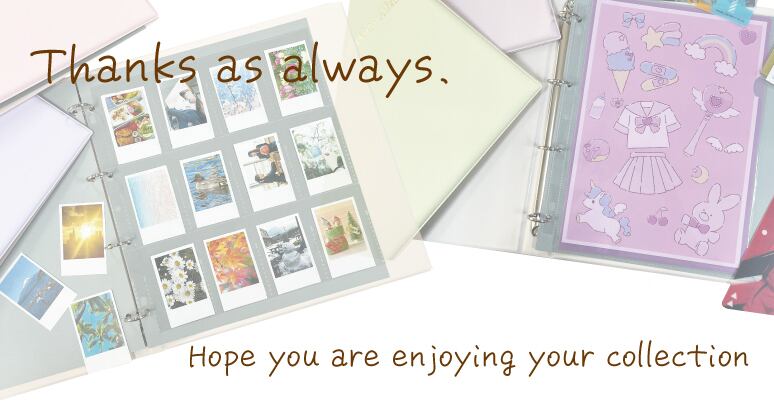 コレクションアルバムA4 専用リフィール チェキリフィール12面・10枚入【NCA-4430S】です ※こちらは、弊社コレクションアルバムA4【NCA-40】(別売)にセットしてご利用ください A4サイズのリフィールに12面のポケットがあり、チェキ(54×86mm)に対応しています 最大 W63×W93mmまで収納できるため、チェキ以外もコレクションできます ●透明度の高いリフィールは、コレクションのデザインやイラストをきれいな状態で閲覧することができます ●ポケットの上部にフラップがついており、落下を防ぎます ※分厚いタイプの収納物は、フラップに引っかからずに落下する場合がありますのでご注意ください ●9色のコレクションアルバムA4サイズと、7種類の専用リフィール(別売)と組み合わせて、自分だけのコレクションアルバムを作ることができます コレクションアルバムA4は、弊社職人が1冊ずつ手作業で作製しているので、頑丈で安定した品質です いろいろなグッズを1冊にまとめることができ、大切なコレクションをしっかりお守りします 【製品詳細】 ●品番/NCA-4430S ●枚数/チェキ12面・10枚入 ●本体サイズ/H291×W282×D3mm ●リフィール厚/0.10mm ●本体規格/A4・S型・4穴(80mm間隔) ●材質/ポリプロピレン