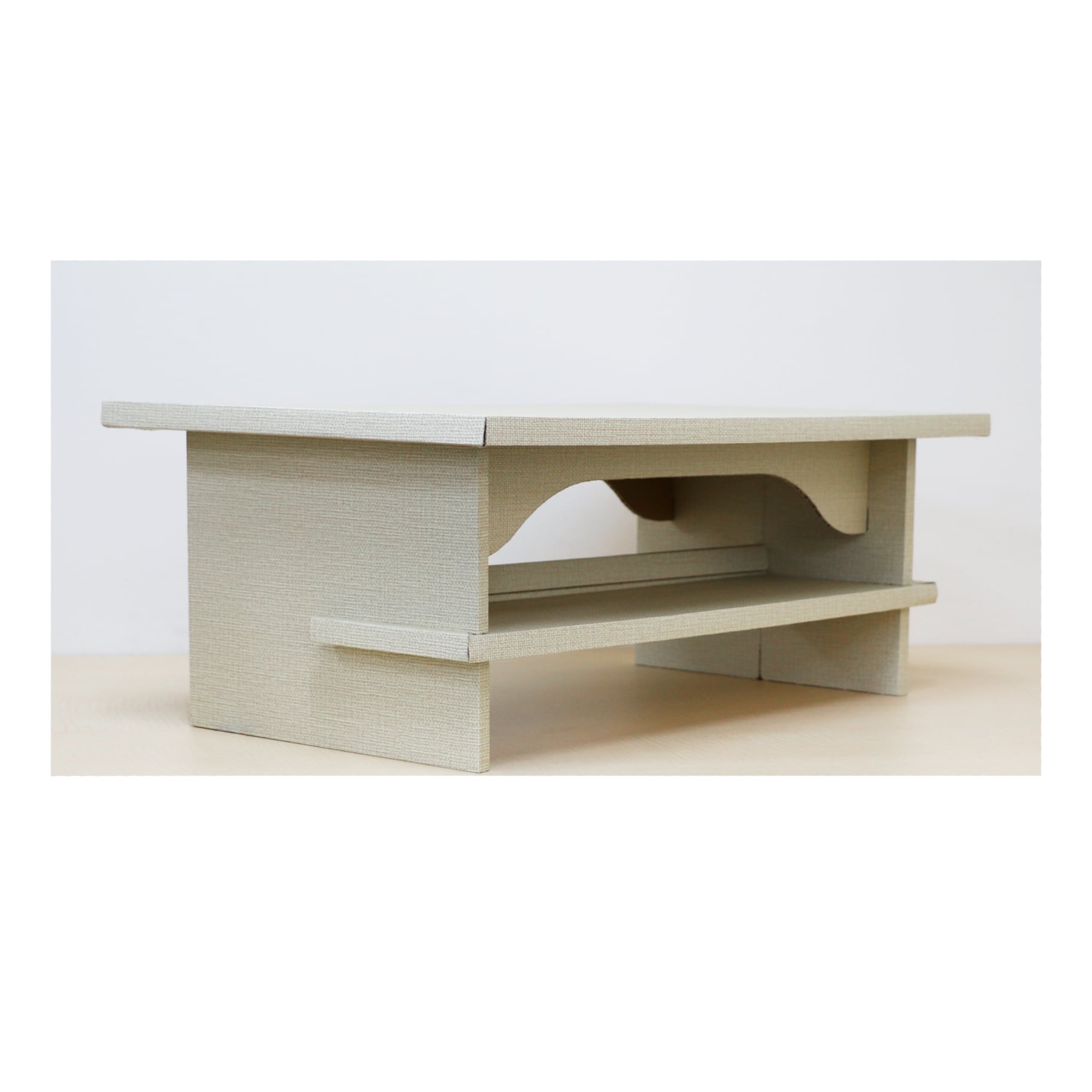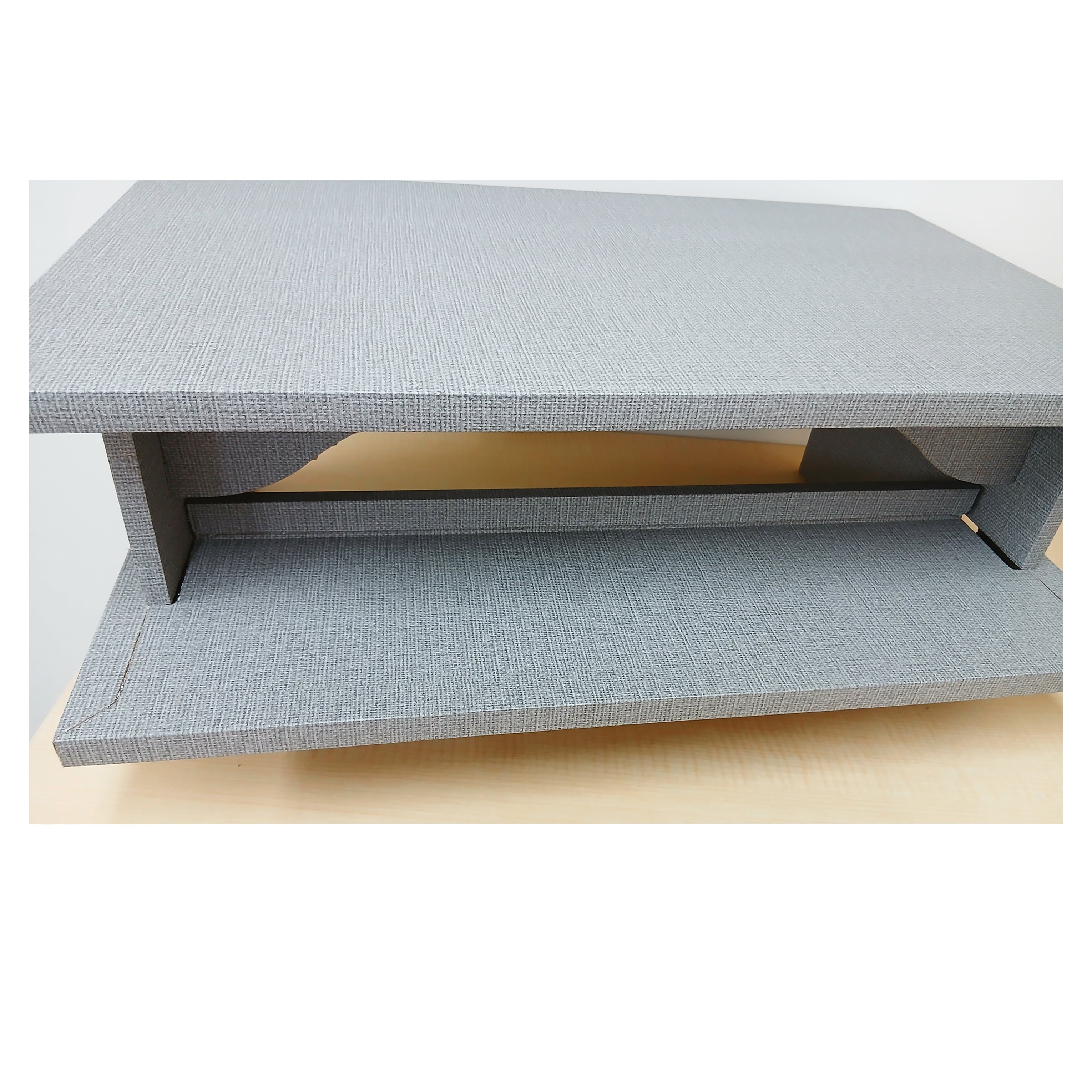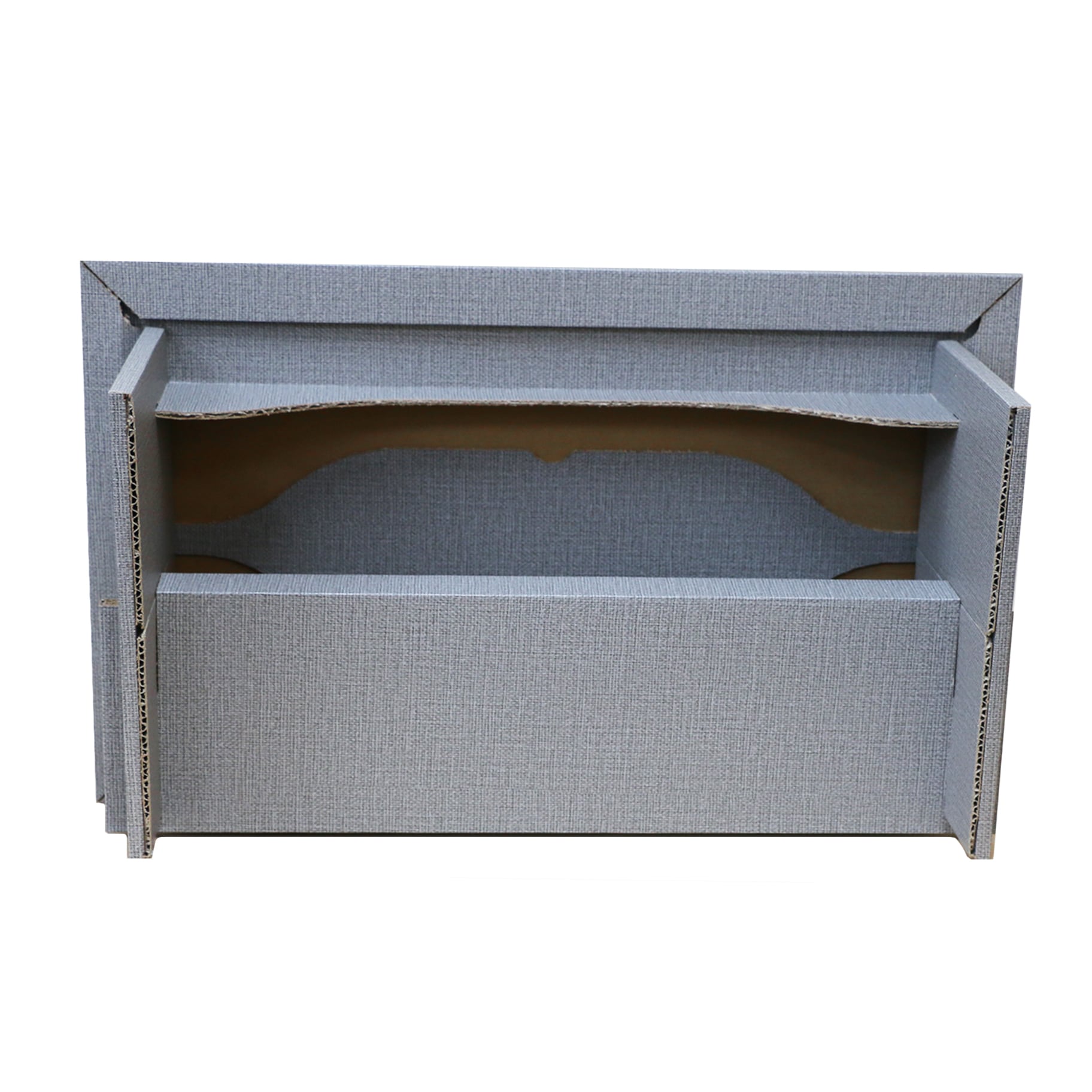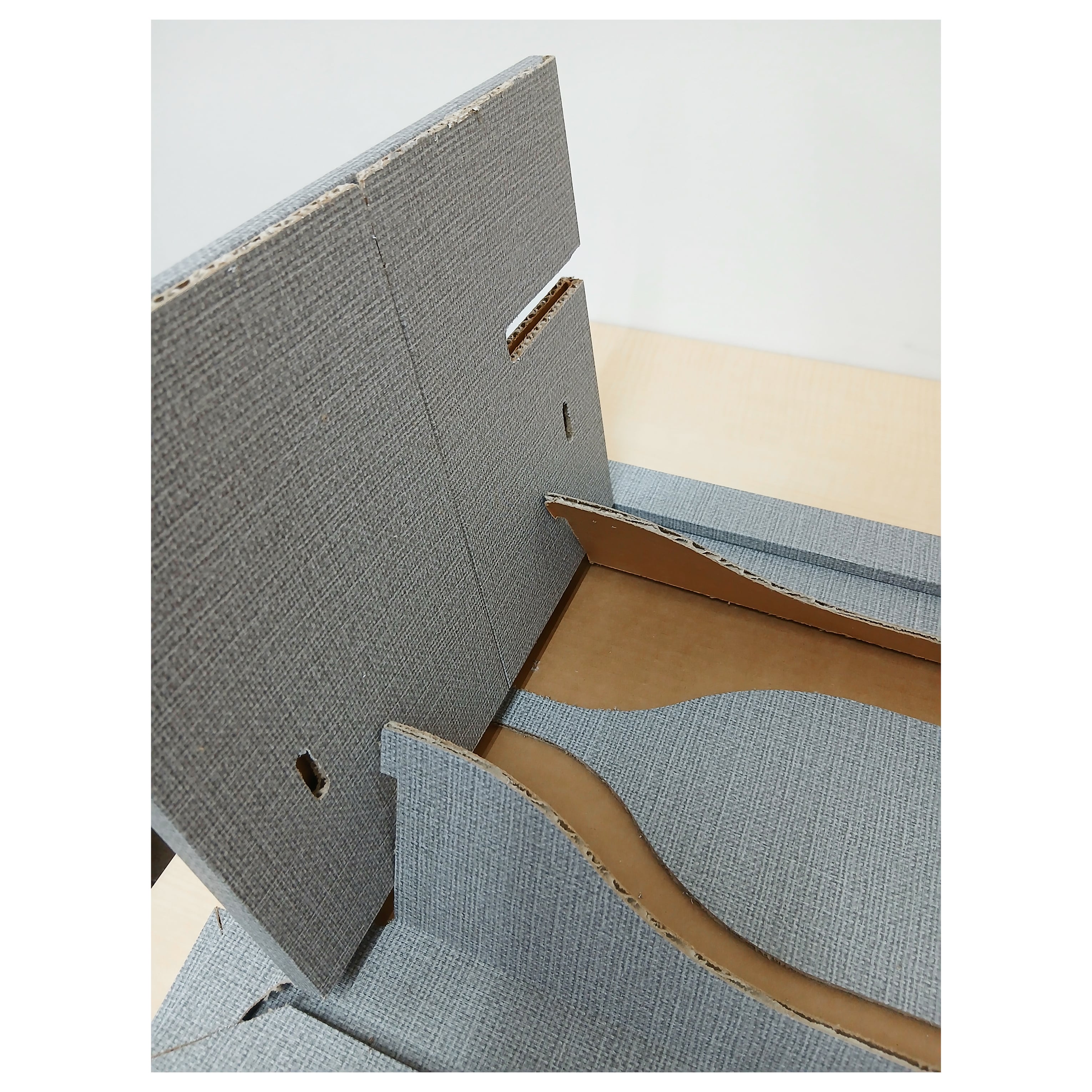 また、ダンボールに高級感のあるクロス風のシートを貼っており、インテリアにもなじむ落ち着いたカラーリングになっています