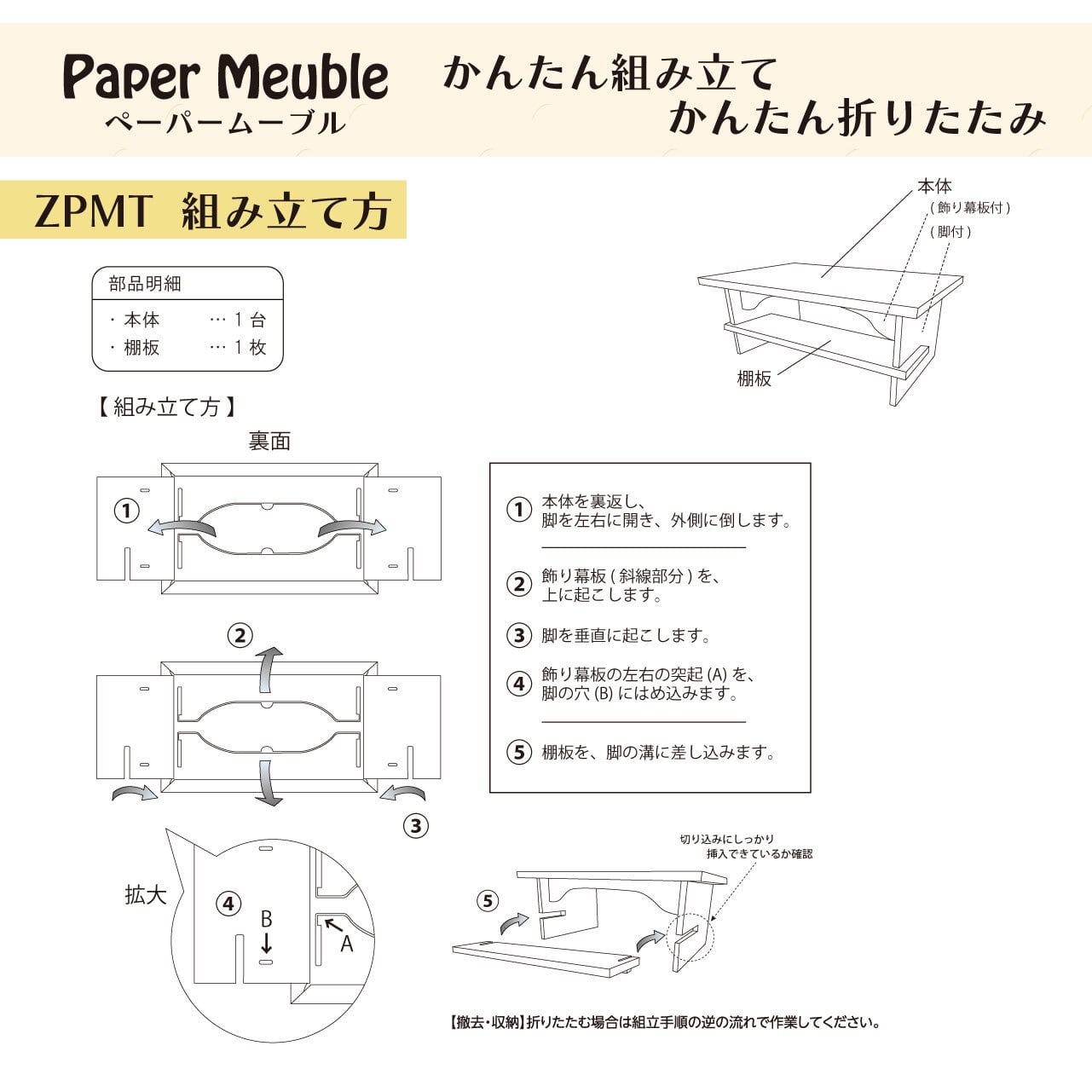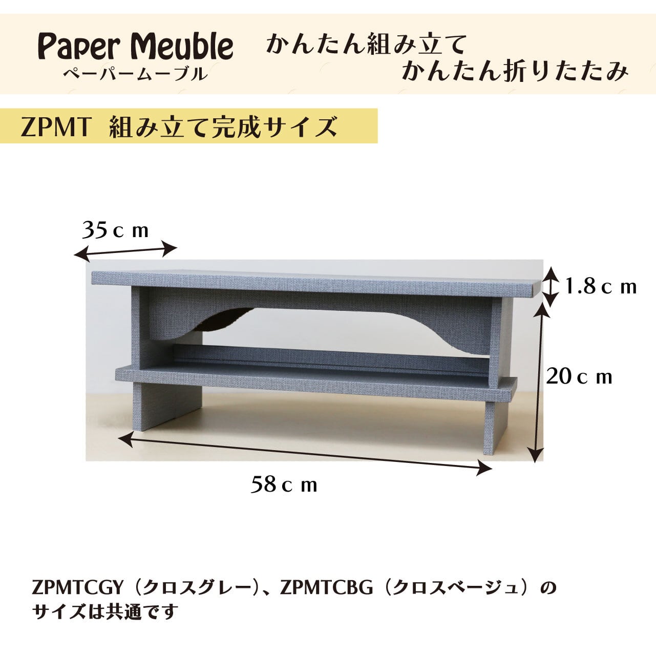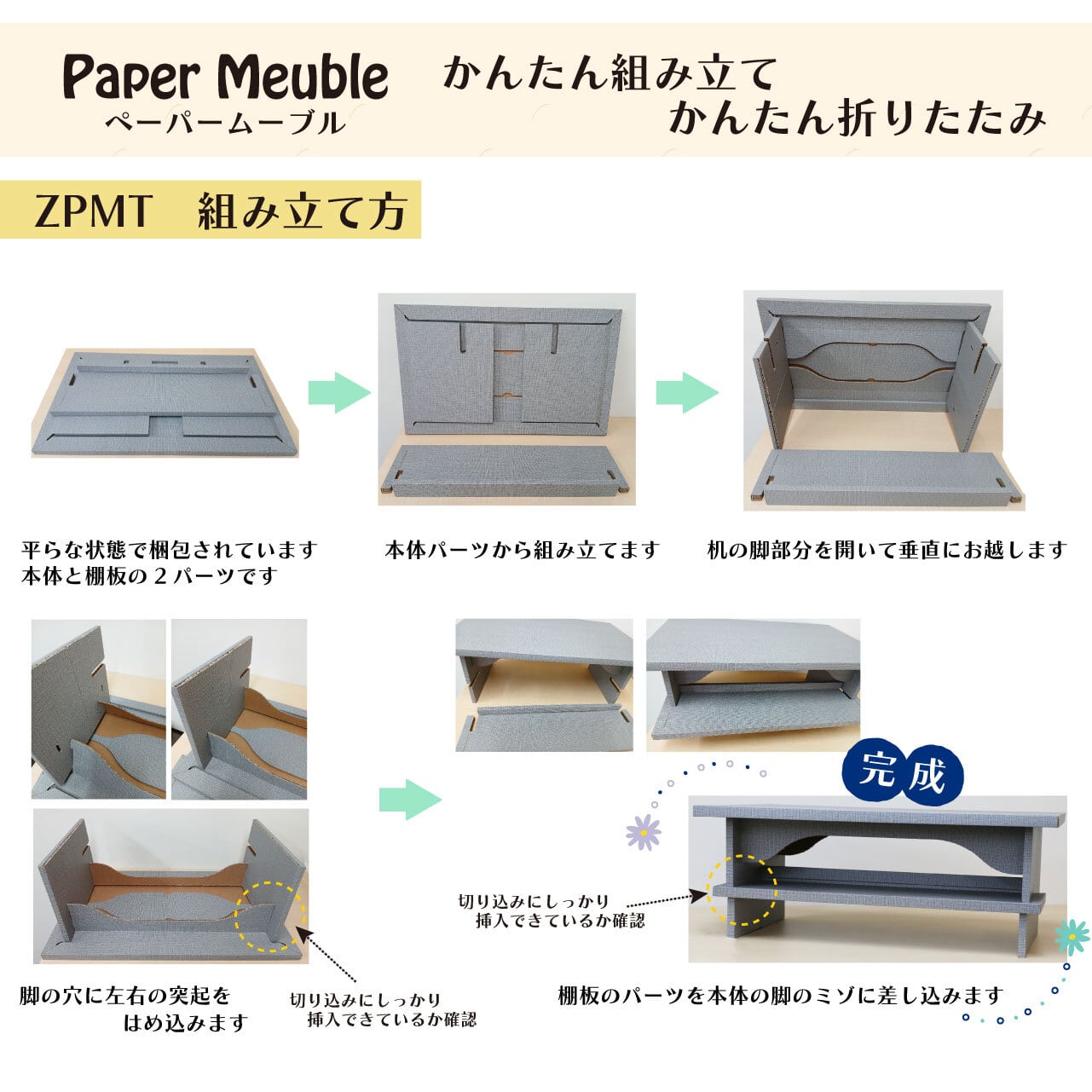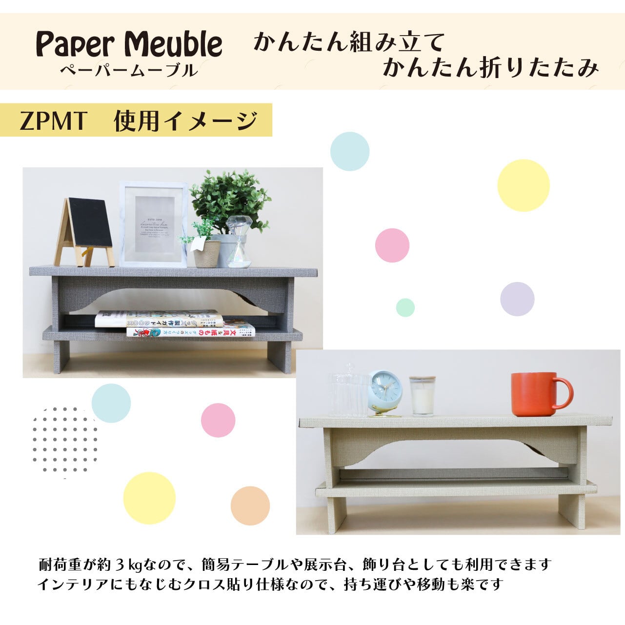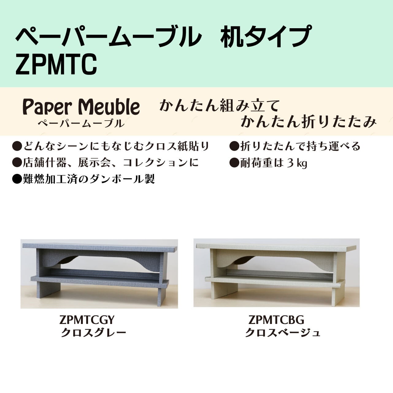 かんたん組み立て&かんたん折りたたみ【ペーパームーブル】机タイプ 紙製什器【ZPMTCGY・ZPMTCBG】