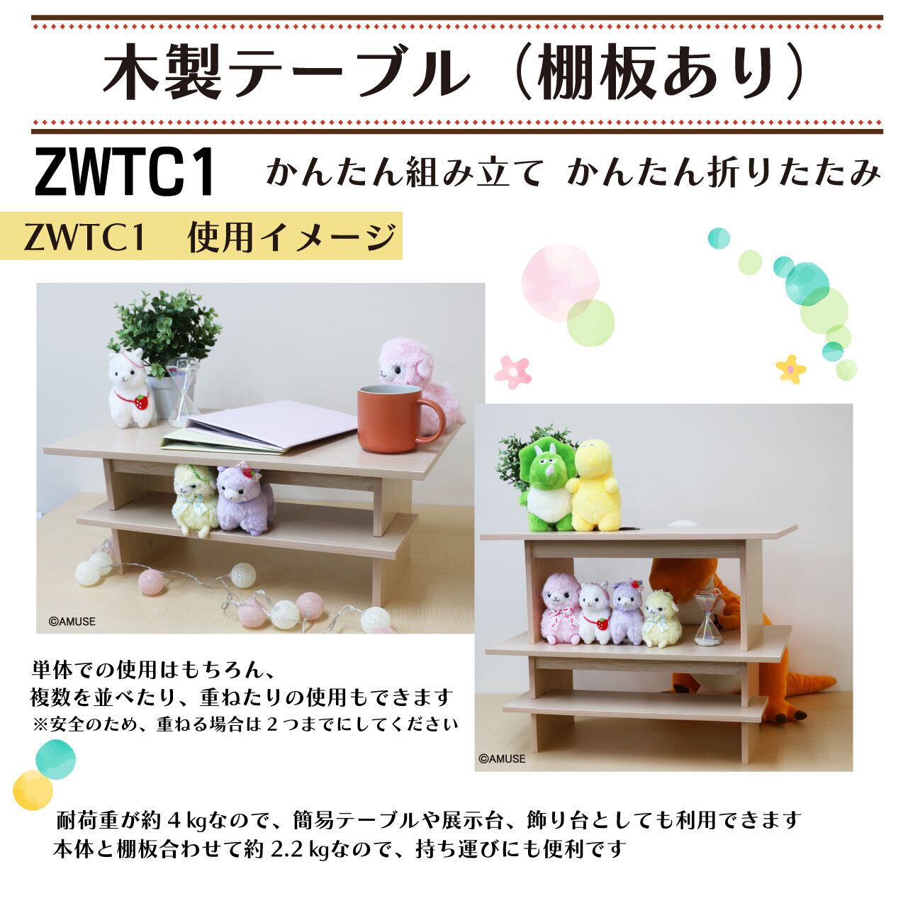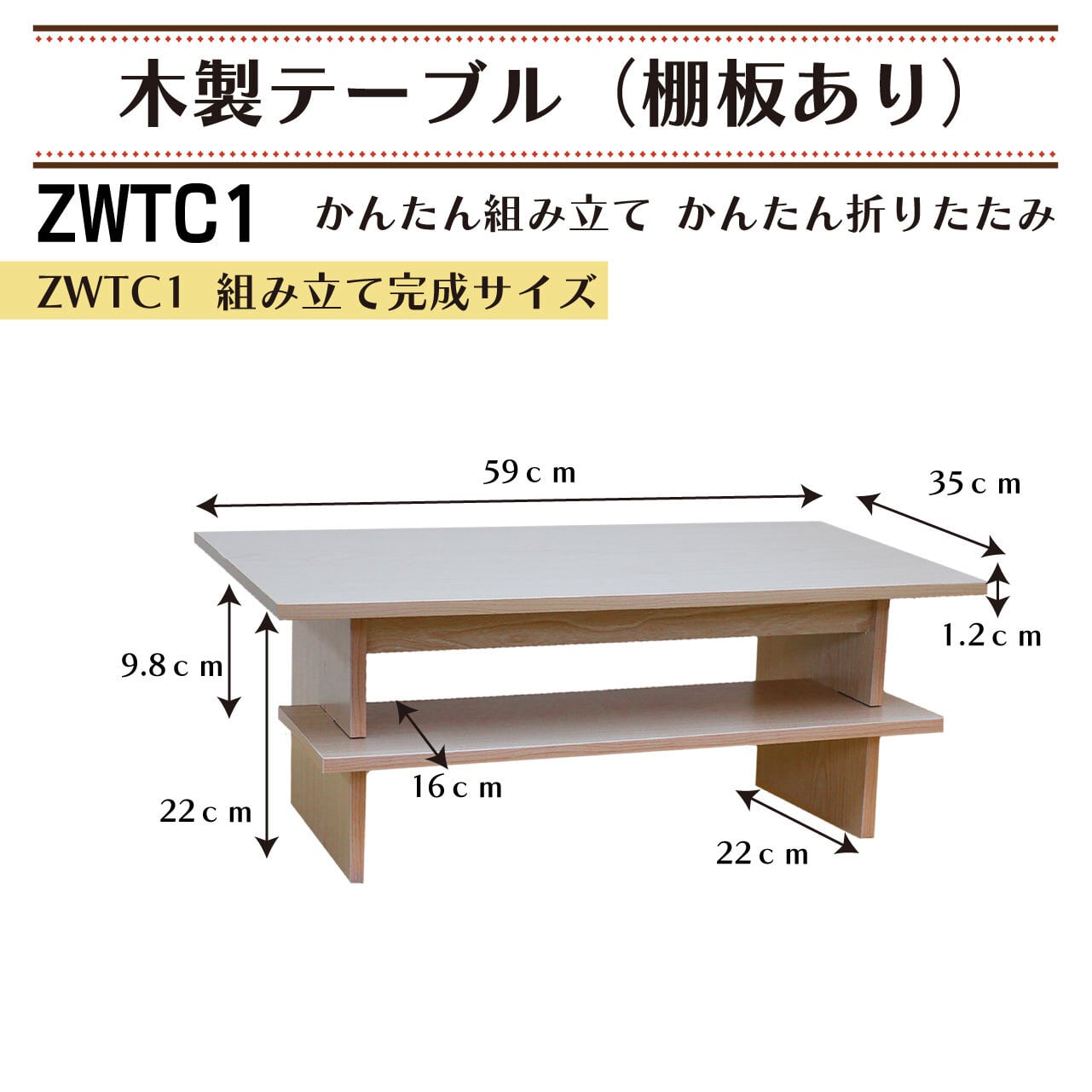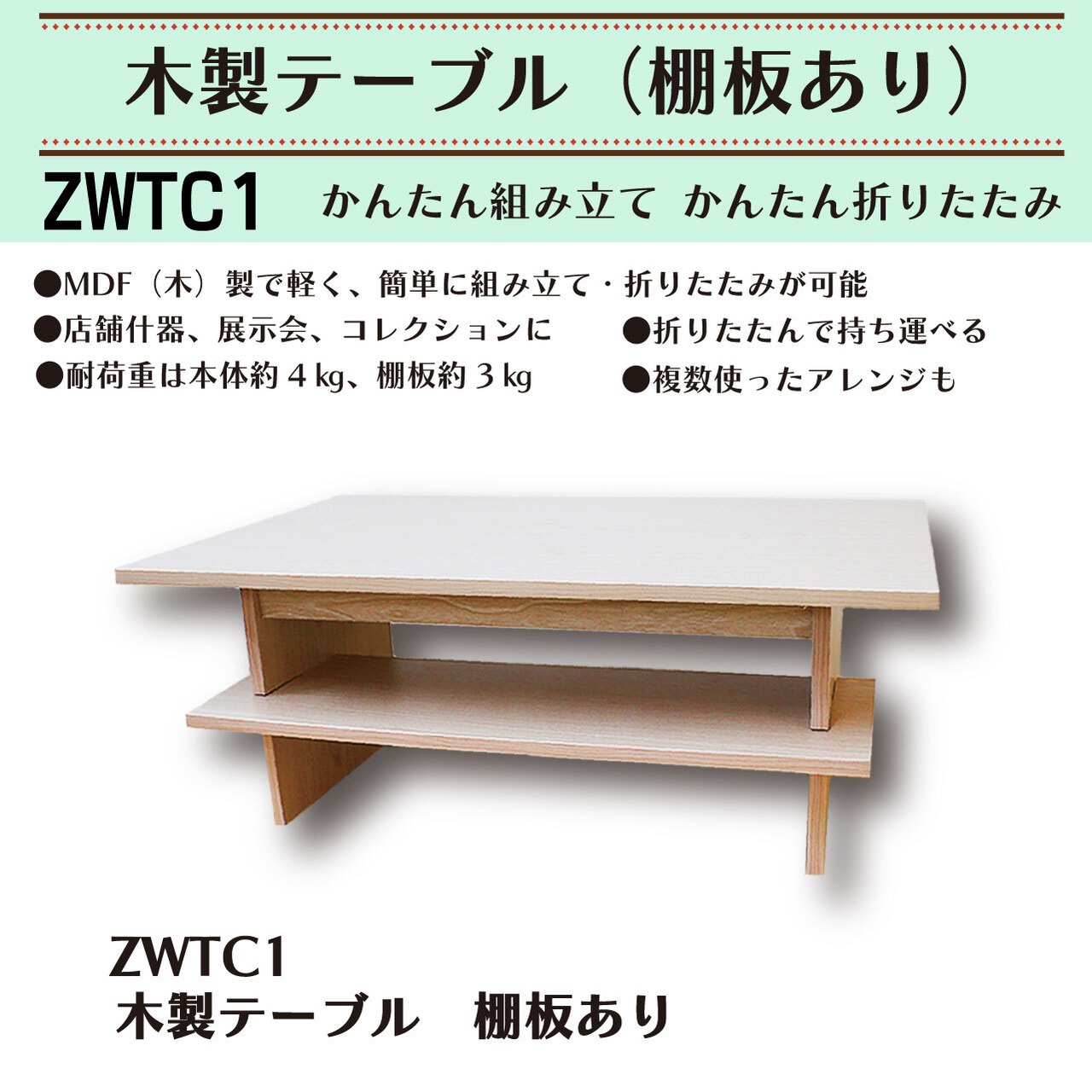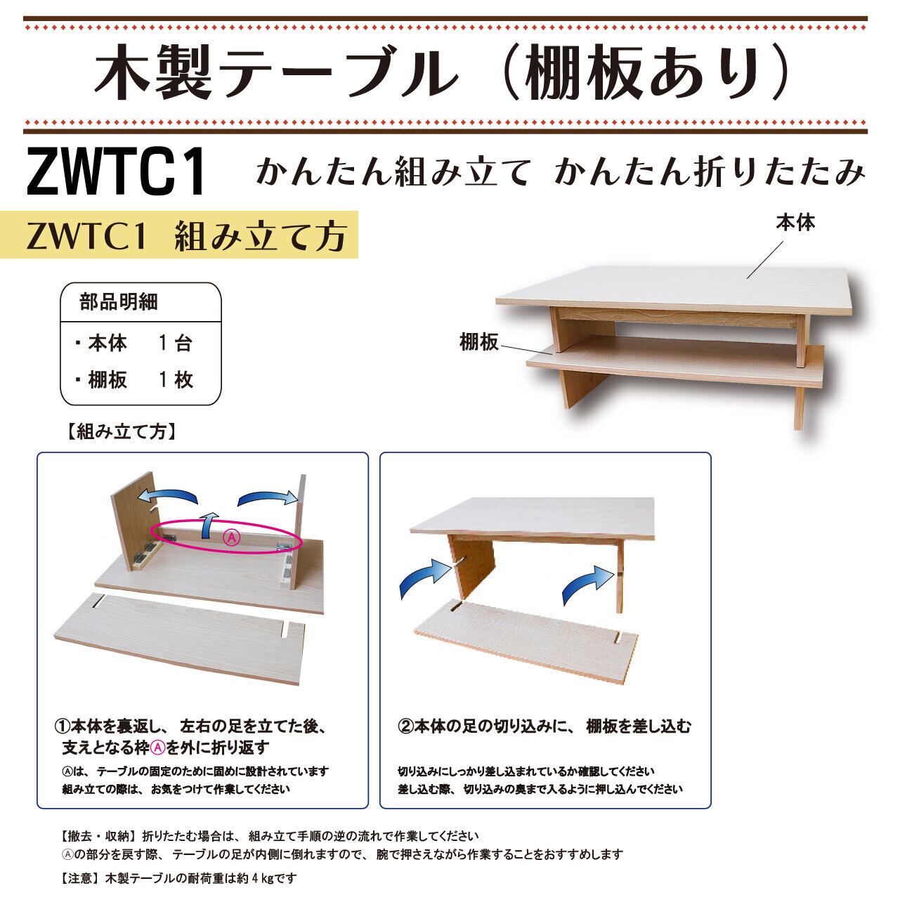 ★4月下旬発売予定です★ かんたん組み立て&かんたん折りたたみ 木製テーブル(棚板あり)【ZWTC1】