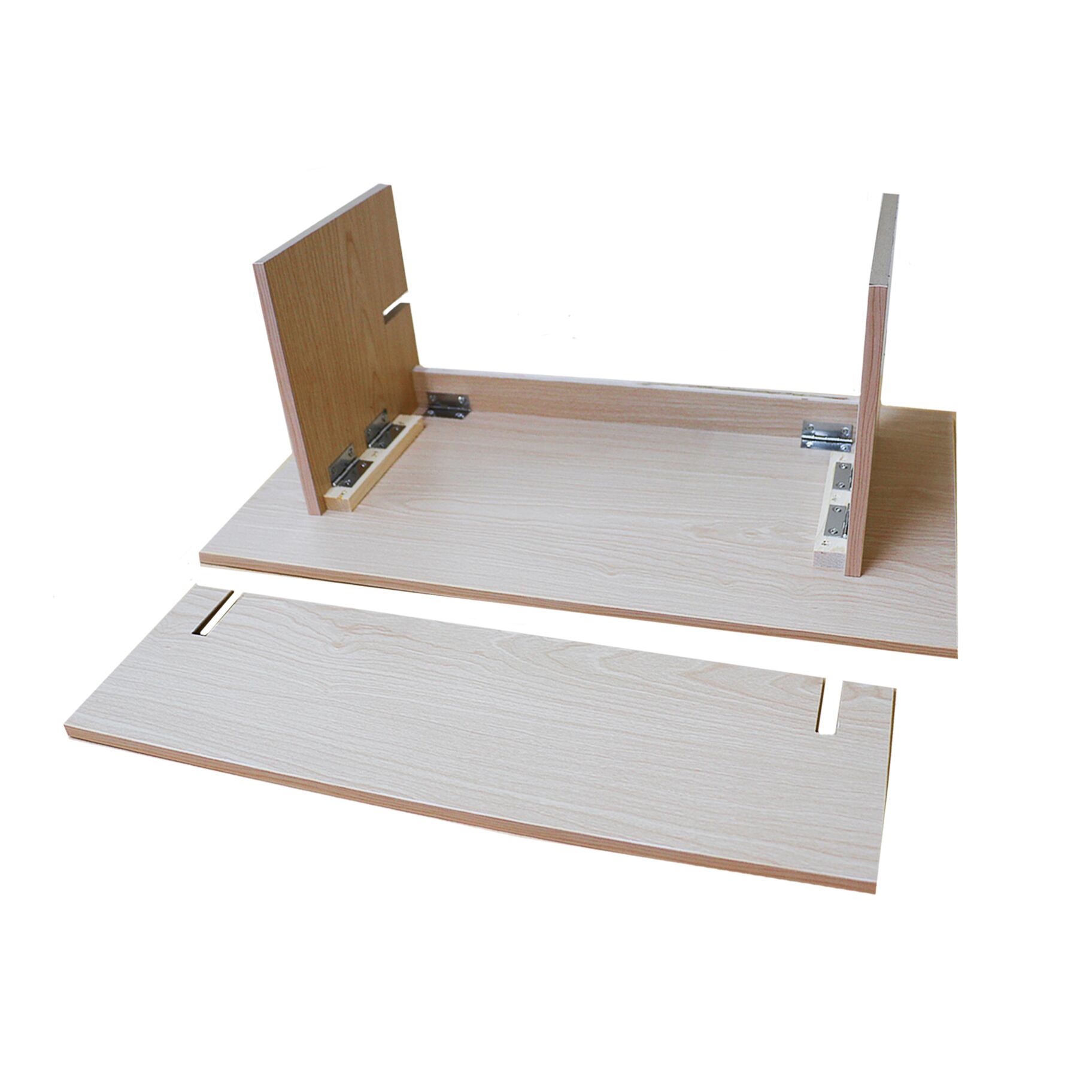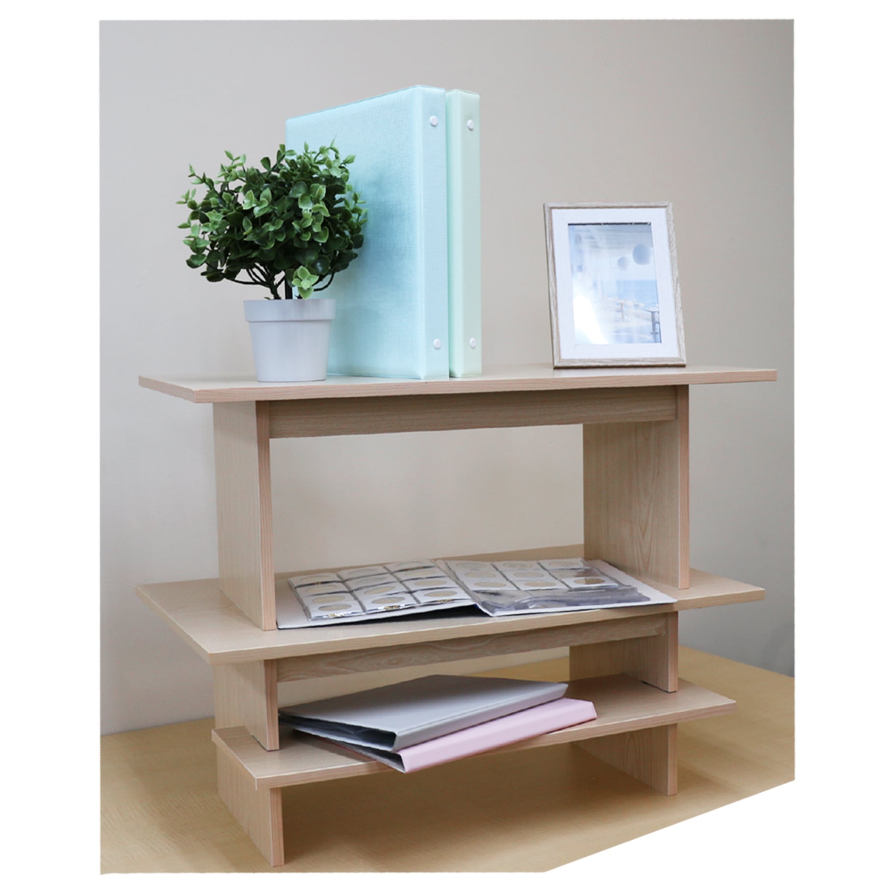 本体のパーツを組み立てた後、棚板を差し込むだけなので、慣れたら30秒以内で組み立て完了します