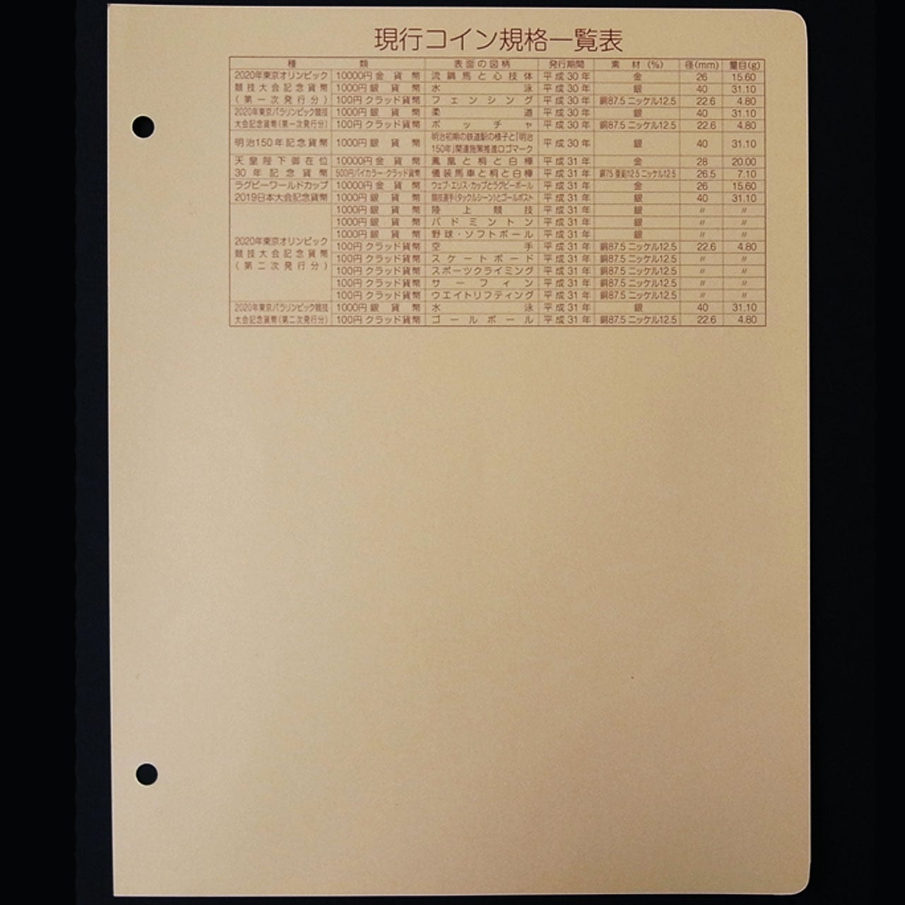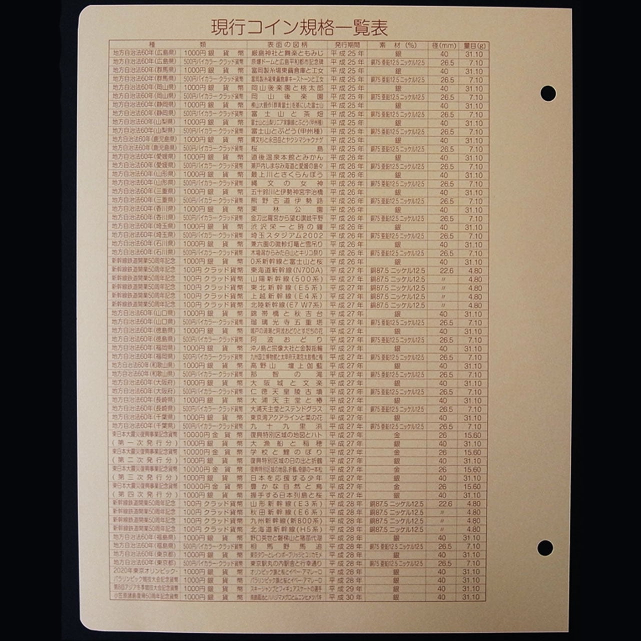 現行コイン規格一覧表、年号別製造枚数表(平成コインアルバムⅡ用)2枚1セット/ZCSS2