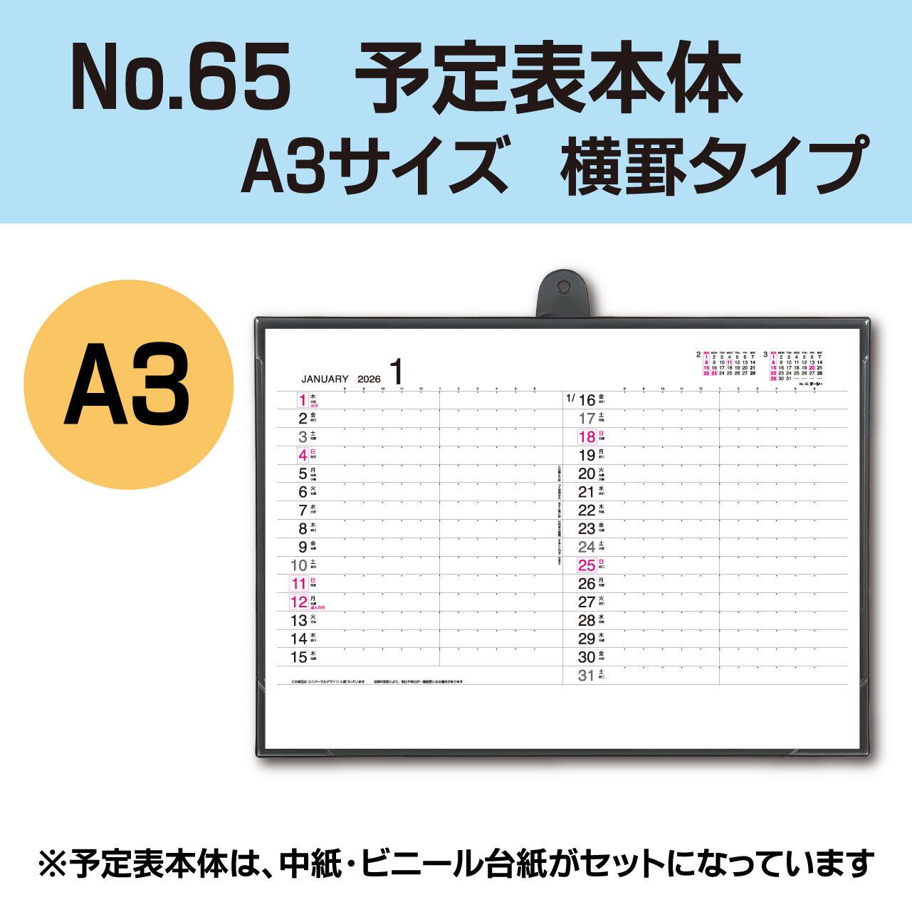 A3サイズの横罫タイプの予定表【No.65】です。