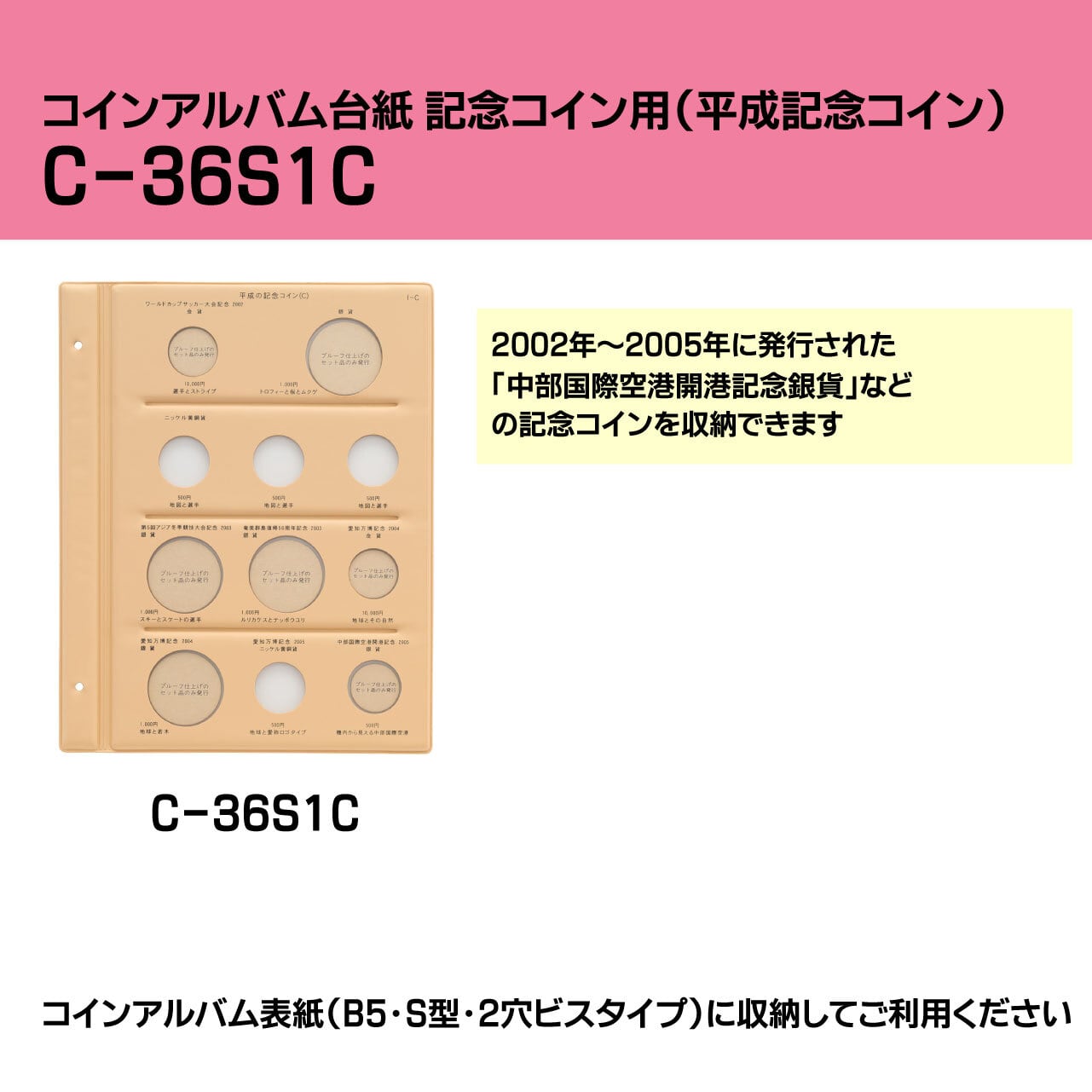 2002年~2005年に発行された記念コインを収納するためのコイン台紙【C-36S1C】です。