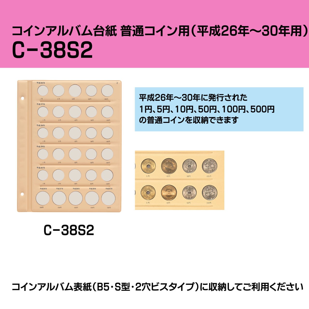 平成26年~30年に発行された1円、5円、10円、50円、100円、500円を収納することができるコインアルバム台紙の【C-38S2】です。