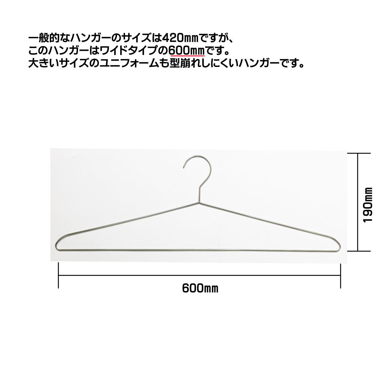 Lサイズには大きめ(横60cm)ハンガーをご用意しました。