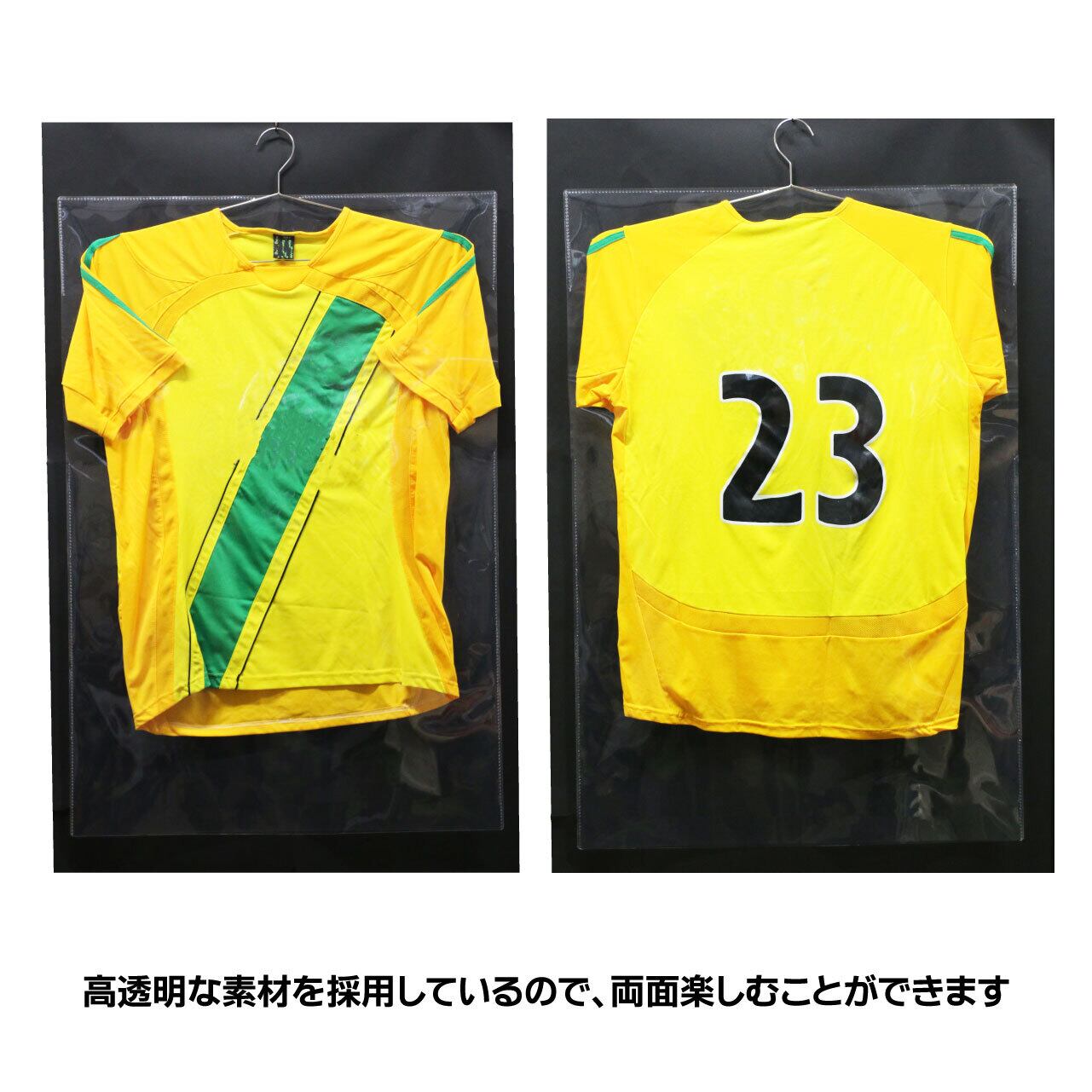 高透明PP(ポリプロピレン)を使用している為、両面からユニフォームを見ることができます。