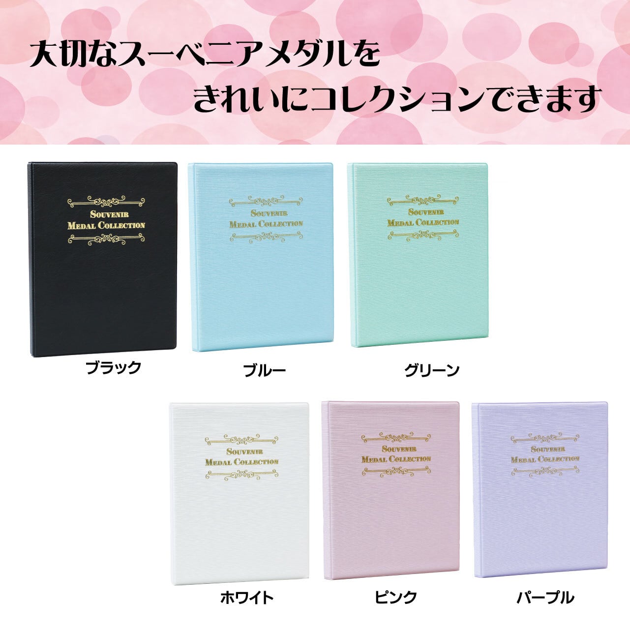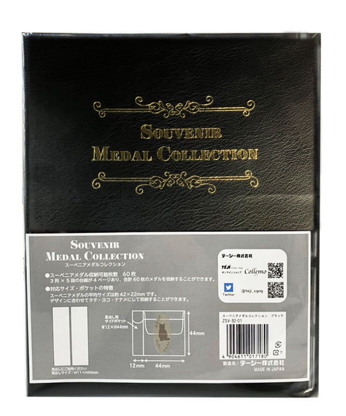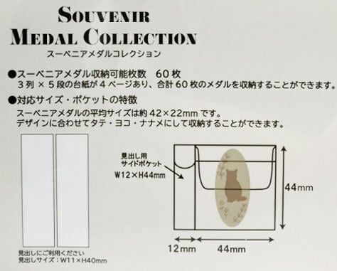 楕円形に出てくるスーベニアメダルは少しずつサイズが異なりますが、こちらのスーベニアメダルコレクションでまとめて収納することが出来ます。