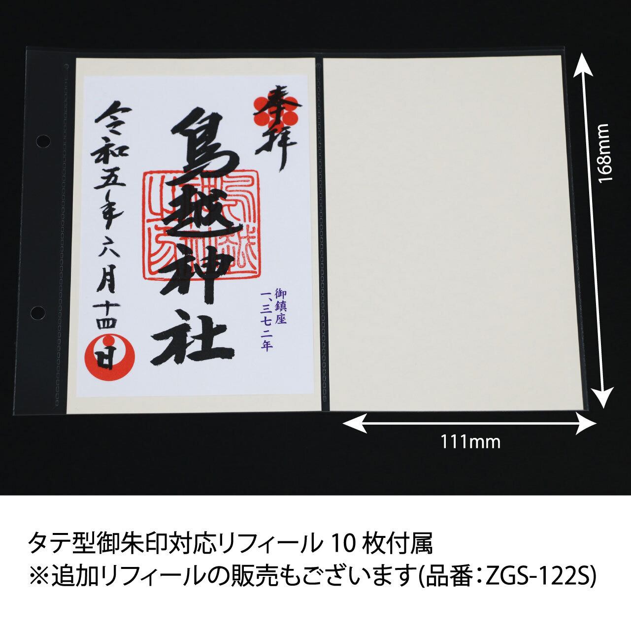 ●本体仕様/タテ型御朱印対応リフィール10枚+見開き用リフィール1枚 付属