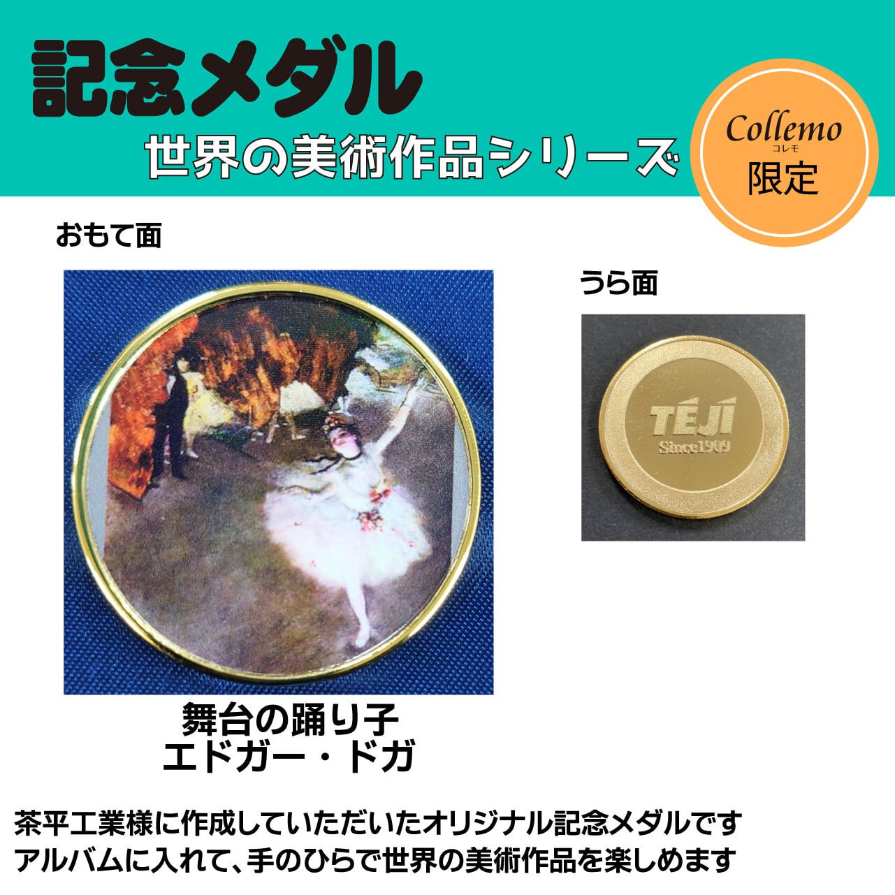 記念メダルを集める楽しさを多くの方に知っていただきたいと思い、ご当地メダルでおなじみの茶平工業株式会社様に世界の美術作品を記念メダルにしていただきました。