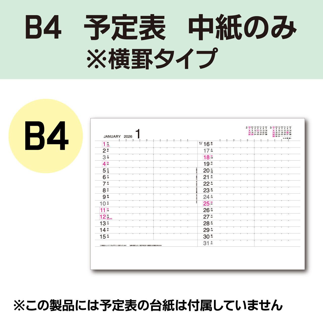 【2026年度版】B4予定表 中紙のみ※横罫タイプ 台紙なし