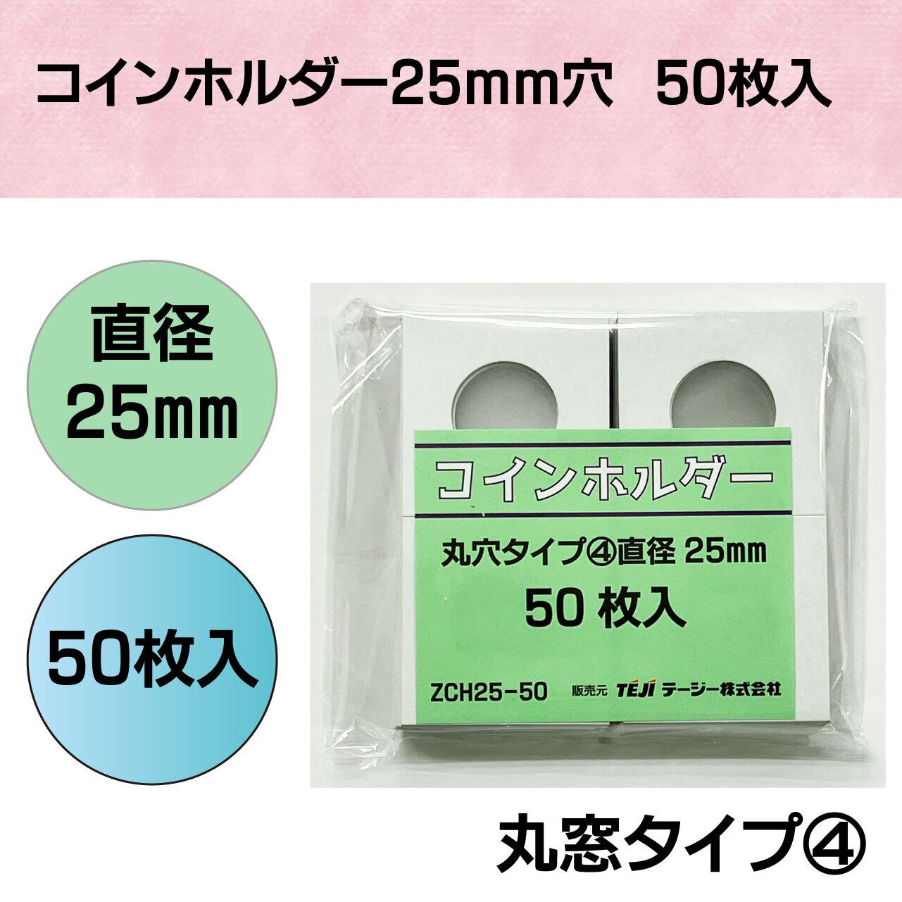 コインホルダー50枚入【直径25mm】丸窓タイプ④ PP袋入れ ZCH2550